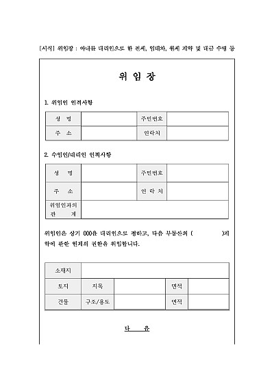 위임장 : 아내를 대리인으로 한 전세, 임대차, 월세 계약 및 대금 수령 등 요약정보 및 구매