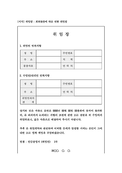 위임장 : 회의불참에 따른 권한 위임장 요약정보 및 구매