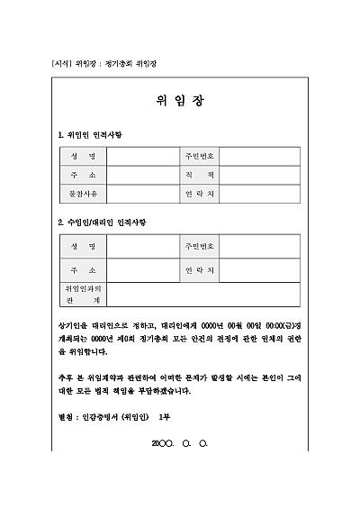위임장 : 정기총회 위임장 요약정보 및 구매
