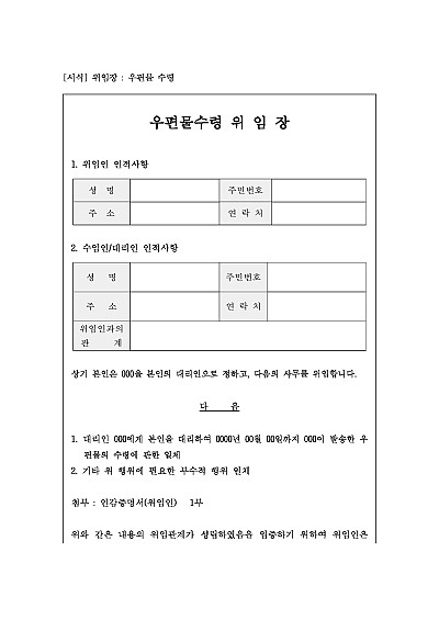 위임장 : 우편물 수령 요약정보 및 구매