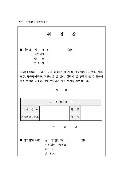 위임장 : 자동차등록 요약정보 및 구매