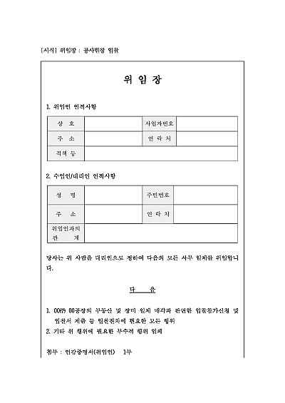 위임장 : 공사현장 입찰 요약정보 및 구매