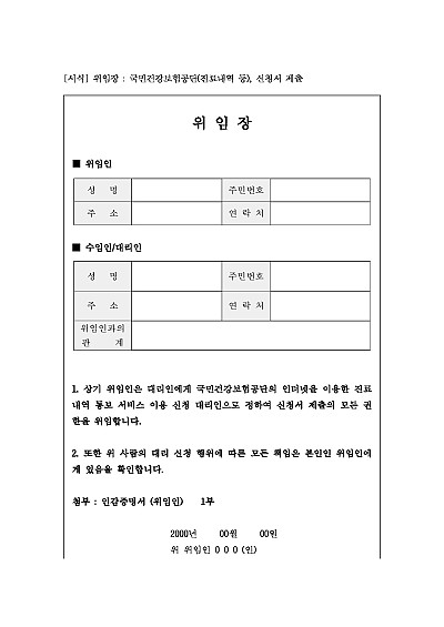 위임장 : 국민건강보험공단(진료내역 등), 신청서 제출 요약정보 및 구매