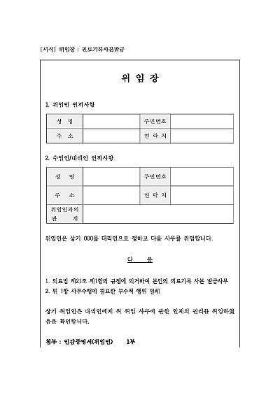 위임장 : 진료기록사본발급 요약정보 및 구매