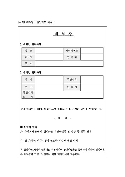 위임장 : 법인카드 재발급 요약정보 및 구매