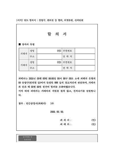 절도 합의서 : 문방구, 편의점 등 합의, 처벌불원, 선처탄원 요약정보 및 구매