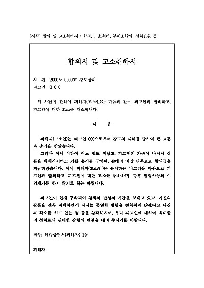 합의 및 고소취하서 : 합의, 고소취하, 부제소합의, 선처탄원 등 요약정보 및 구매
