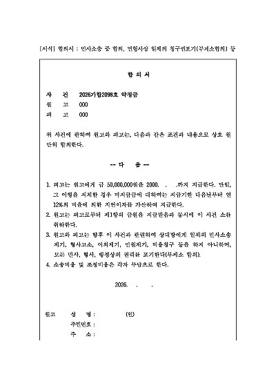 합의서 : 민사소송 중 합의, 민형사상 일체의 청구권포기(부제소합의) 등 요약정보 및 구매