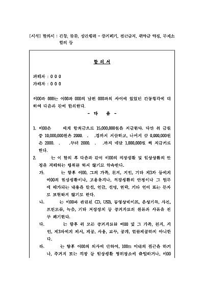 [전문로펌제작] 합의서 : 간통, 불륜, 상간행위 – 증거폐기, 접근금지, 위약금 약정, 부제소 합의 등 요약정보 및 구매