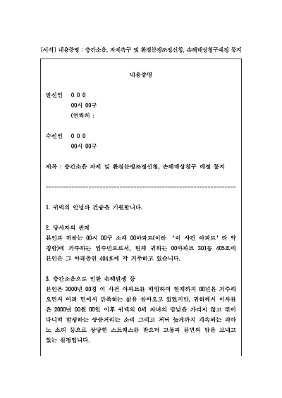 주요내용 : 아파트 상하층 사이에서 발생하는 층간소음의 방지 촉구 및 미행시 환경분쟁조정신청 등 법적조치에 착수할 예정임을 통지함으로써 상대방에게 법적 분쟁이 시작될 수 있음을 알리고 심리적 압박을 주어 소송 전 상대방의 자발적 이행 및 합의를 유도하기 위한 목적으로 사용되어지는 양식임. 단 무단전재 방지목적으로PDF파일로 올리니,구매하신 후 혹 원본 파일이 필요하신 분들은 톡이나 문자,메일,전화 등을 주시면 작성방법 등에 대한 간단한 무료상담과 함께 원본 파일을 보내드리도록 하겠습니다.