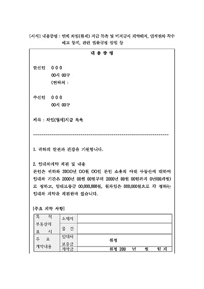주요내용 : 임대차계약체결 및 임차인의 월세 연체시 그 지급을 독촉하면서 정상적인 지급이 이루어지지 아니할 경우 계약해지는 물론 그 지급을 위한 법적조취에 착수하겠다는 통지를 함으로써 상대방에게 법적 분쟁이 시작될 수 있음을 알리고 심리적 압박을 주어 소송 전 상대방의 자발적 이행 및 합의를 유도하기 위한 목적으로 사용되어지는 양식임.단 무단전재 방지목적으로PDF파일로 올리니,구매하신 후 혹 원본 파일이 필요하신 분들은 톡이나 문자,메일,전화 등을 주시면 작성방법 등에 대한 간단한 무료상담과 함께 원본 파일을 보내드리도록 하겠습니다.