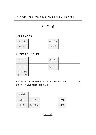 위임장 : 부동산 매매, 전세, 임대차, 월세 계약 및 대금 수령 등 요약정보 및 구매