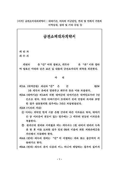 금전소비대차계약서 : 대여기간, 이자의 지급방법, 변제 및 연체시 기한의 이익상실, 상계 및 기타 규정 등 요약정보 및 구매