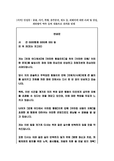 반성문 : 공용, 사기, 폭행, 음주운전, 절도 등, 피해자에 대한 사죄 및 반성, 재발방지 약속 등의 내용으로 선처를 탄원 요약정보 및 구매