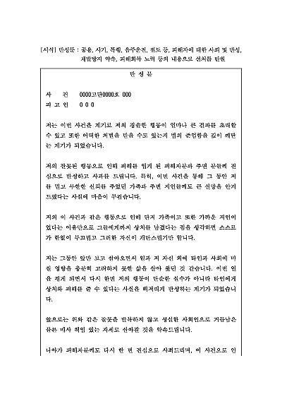 반성문 : 공용, 사기, 폭행, 음주운전, 절도 등, 피해자에 대한 사죄 및 반성, 재발방지 약속, 피해회복 노력 등의 내용으로 선처를 탄원 요약정보 및 구매