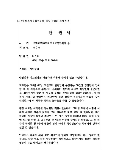 탄원서 : 음주운전, 직장 동료의 선처 탄원 요약정보 및 구매