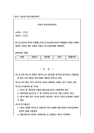 자동차 일시사용계약서 양식 요약정보 및 구매