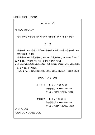차용증서 : 분할상환 양식 요약정보 및 구매