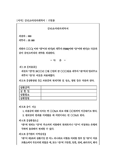 금전소비대차계약서 - 기업용 요약정보 및 구매