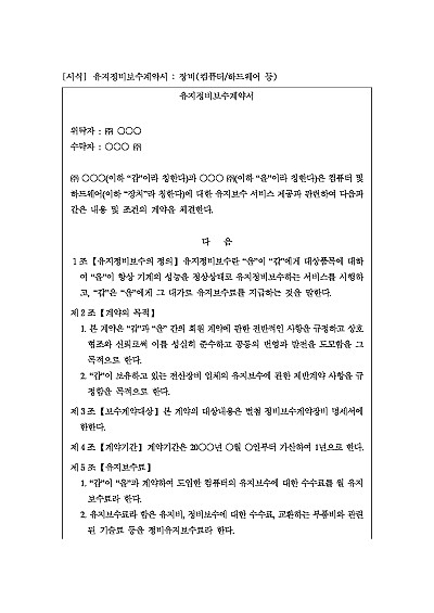 유지정비보수계약서 양식(컴퓨터/하드웨어 등) 요약정보 및 구매