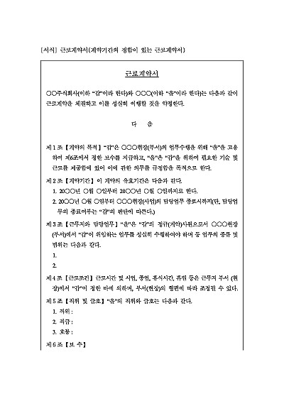근로계약서, 기간의 정함이 있는 근로계약서 요약정보 및 구매