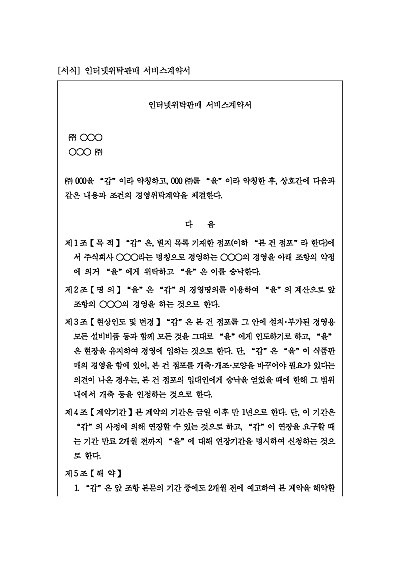 주요내용 : 현상인도 및 변경, 계약기간, 해약, 보수, 자금의 조달, 비용부담, 예탁금, 세금의 납부, 장부보고, 계약해지 사유 및 종류, 비용상환청구금지 등 내용 기재. 단 무단전재 방지목적으로 PDF 파일로 올리니, 구매하신 후 혹 원본 파일이 필요하신 분들은 톡이나 문자, 메일, 전화 등을 주시면 작성방법 등에 대한 간단한 무료상담과 함께 원본 파일을 보내드리도록 하겠습니다.