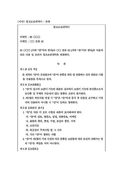- 프랜차이즈 등 유통거래계약서