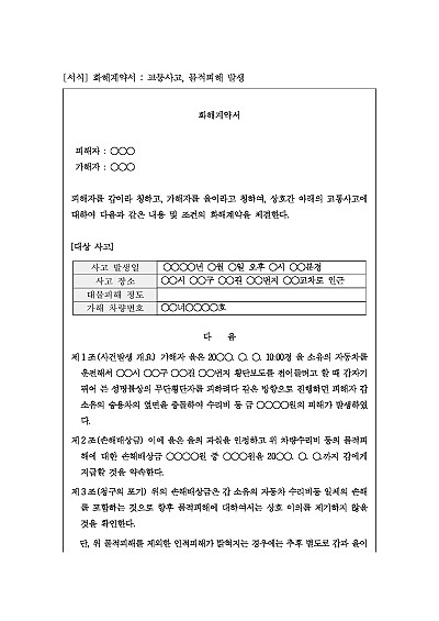 화해계약서 : 교통사고, 물적피해 요약정보 및 구매