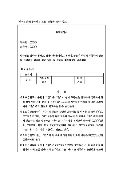 주요내용 : 인도합의, 인도대금 지급방법, 인도기한, 권리의 포기, 인수인의 의무 등 내용 기재. 단 무단전재 방지목적으로 PDF 파일로 올리니, 구매하신 후 혹 원본 파일이 필요하신 분들은 톡이나 문자, 메일, 전화 등을 주시면 작성방법 등에 대한 간단한 무료상담과 함께 원본 파일을 보내드리도록 하겠습니다.