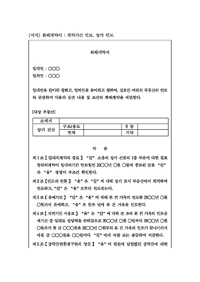 화해계약서 : 점포 인도 요약정보 및 구매