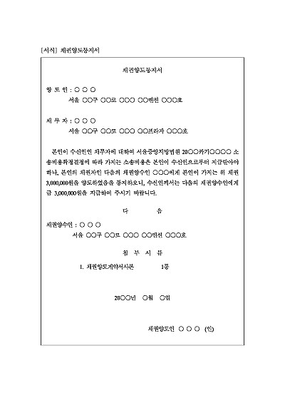 주요내용 : 채권양도양수계약 후 그 사실을 채무자에게 통지하기 위한 목적으로 사용하는 양식임. 단 무단전재 방지목적으로 PDF 파일로 올리니, 구매하신 후 혹 원본 파일이 필요하신 분들은 톡이나 문자, 메일, 전화 등을 주시면 작성방법 등에 대한 간단한 무료상담과 함께 원본 파일을 보내드리도록 하겠습니다.
