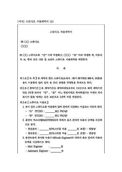 스튜디오 사용계약서 양식 요약정보 및 구매