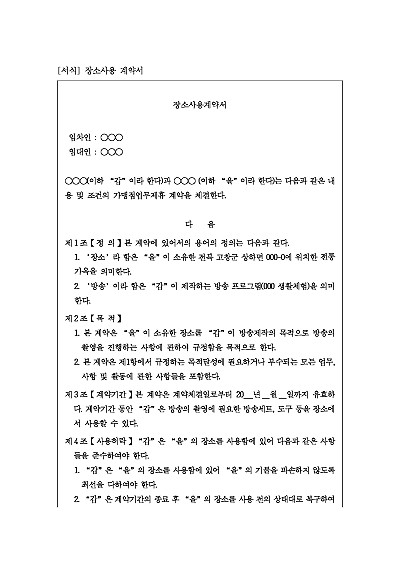 주요내용 : 사용목적, 계약기간, 사용허락, 권리의 귀속, 사용료의 지급, 계약해지, 손해배상 등 내용 기재. 단 무단전재 방지목적으로 PDF 파일로 올리니, 구매하신 후 혹 원본 파일이 필요하신 분들은 톡이나 문자, 메일, 전화 등을 주시면 작성방법 등에 대한 간단한 무료상담과 함께 원본 파일을 보내드리도록 하겠습니다.