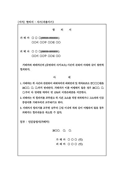 주요내용 : 합의금 및 지연손해금, 고소취하, 합의취소 등 내용 기재. 단 무단전재 방지목적으로 PDF 파일로 올리니, 구매하신 후 혹 원본 파일이 필요하신 분들은 톡이나 문자, 메일, 전화 등을 주시면 작성방법 등에 대한 간단한 무료상담과 함께 원본 파일을 보내드리도록 하겠습니다.