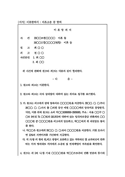 이혼합의서 양식 - 이혼소송 계속 중 합의도출 요약정보 및 구매