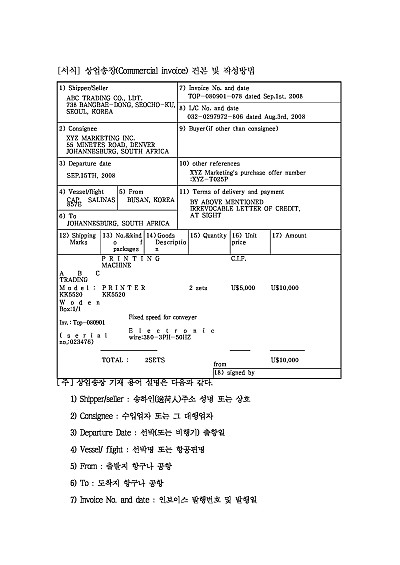 상업송장 견본 및 작성방법 요약정보 및 구매