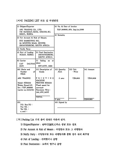 팩킹 리스트 견본 및 작성방법 요약정보 및 구매