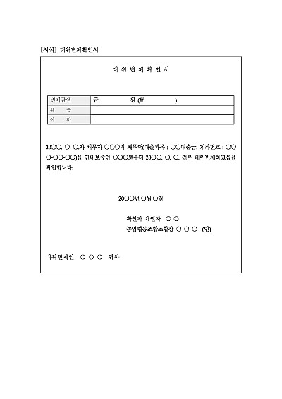 주요내용 : 기존 채무자를 대신하여 당해 채무를 대위변제시 사용하는 양식힘. 단 무단전재 방지목적으로 PDF 파일로 올리니, 구매하신 후 혹 원본 파일이 필요하신 분들은 톡이나 문자, 메일, 전화 등을 주시면 작성방법 등에 대한 간단한 무료상담과 함께 원본 파일을 보내드리도록 하겠습니다.