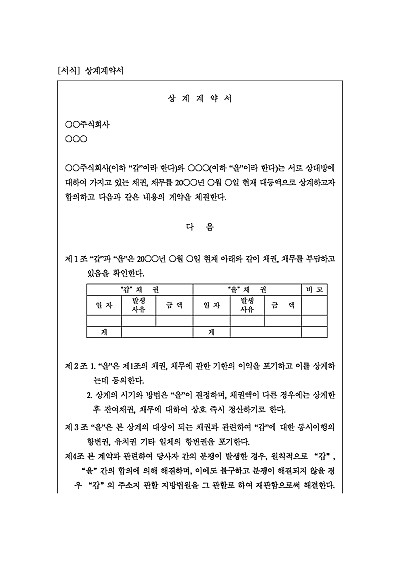주요내용 : 상호간 존재하는 채권채무액을 대등액에서 상계하고자 합의하는 경우 사용하는 양식임. 상계시기 및 방법, 일체의 항변권 포기 등 내용 기재, 단 무단전재 방지목적으로 PDF 파일로 올리니, 구매하신 후 혹 원본 파일이 필요하신 분들은 톡이나 문자, 메일, 전화 등을 주시면 작성방법 등에 대한 간단한 무료상담과 함께 원본 파일을 보내드리도록 하겠습니다.