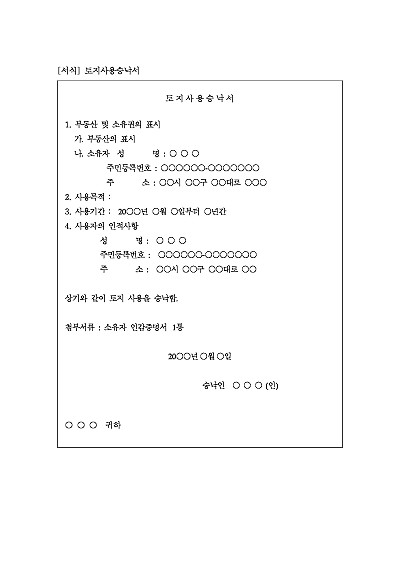 주요내용 : 대상 부동산 및 소유권의 표시, 사용목적, 사용기간, 사용자의 인적사항 등 기재. 단 무단전재 방지목적으로 PDF 파일로 올리니, 구매하신 후 혹 원본 파일이 필요하신 분들은 톡이나 문자, 메일, 전화 등을 주시면 작성방법 등에 대한 간단한 무료상담과 함께 원본 파일을 보내드리도록 하겠습니다.