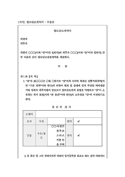 주요내용 : 계약목적, 사용대차, 해제조항, 담보물의 처분방법, 완제 후의 반환절차, 담보제약, 인도방법, 담보 훼멸에 관한 처리, 일반재산에 대한 강제집행 등 내용 기재. 단 무단전재 방지목적으로 PDF 파일로 올리니, 구매하신 후 혹 원본 파일이 필요하신 분들은 톡이나 문자, 메일, 전화 등을 주시면 작성방법 등에 대한 간단한 무료상담과 함께 원본 파일을 보내드리도록 하겠습니다.