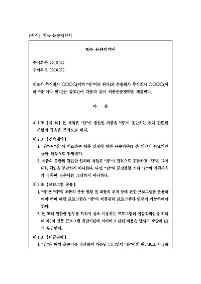 제품 운송계약서 양식 요약정보 및 구매