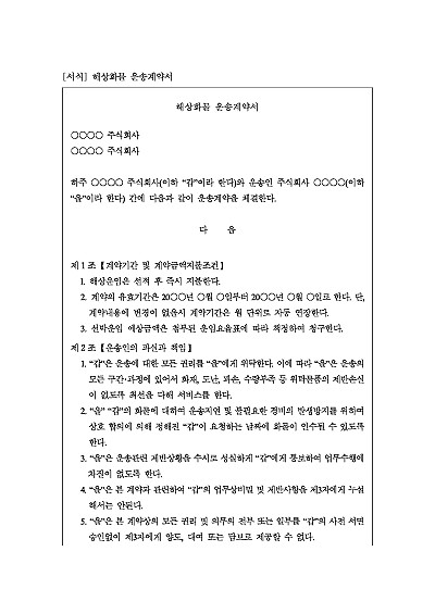 해상화물 운송계약서 양식 요약정보 및 구매