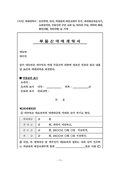 주요내용 매도인이 부동산의 소유권을 매수인에게 이전하고매수인은 그 대금을 지급하기로 합의하는 내용이 담긴 법적 효력이 있는 문서임단 무단전재 방지목적으로 PDF 파일로 올리니구매하신 후 혹 원본 파일이 필요하신 분들은 톡이나 문자메일전화 등을 주시면 작성방법 등에 대한 간단한 무료상담과 함께 원본 파일을 보내드리도록 하겠습니다.