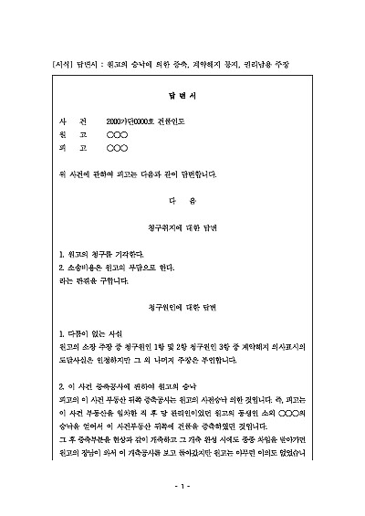 답변서 : 원고의 승낙에 의한 증축, 계약해지 통지, 권리남용 주장 요약정보 및 구매