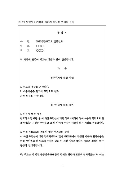 답변서 : 기한을 정하지 아니한 임대차 분쟁 요약정보 및 구매
