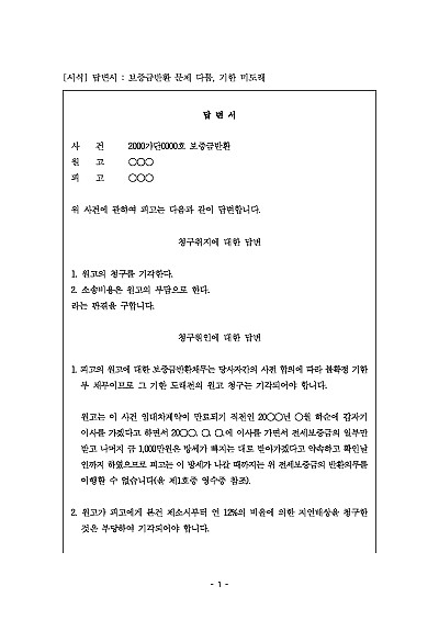 답변서 : 보증금반환 문제 다툼, 기한 미도래 요약정보 및 구매