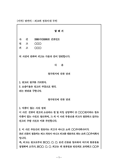 답변서 : 피고의 점유사실 부인 요약정보 및 구매
