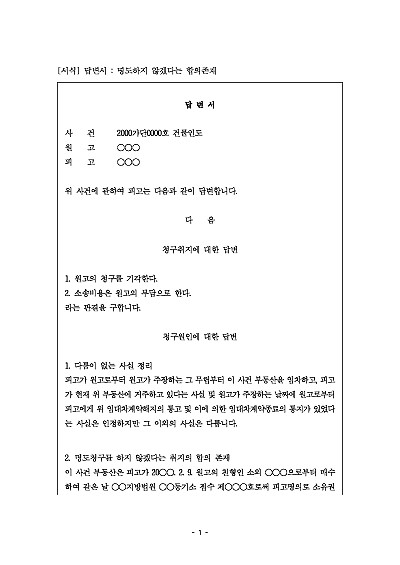 답변서 : 명도하지 않겠다는 합의존재 요약정보 및 구매