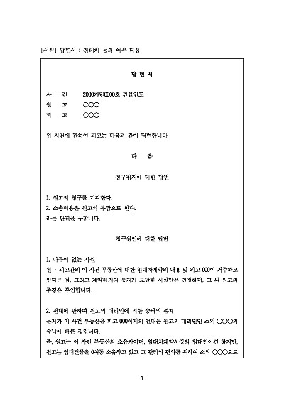답변서 : 전대차 동의 여부 다툼 요약정보 및 구매
